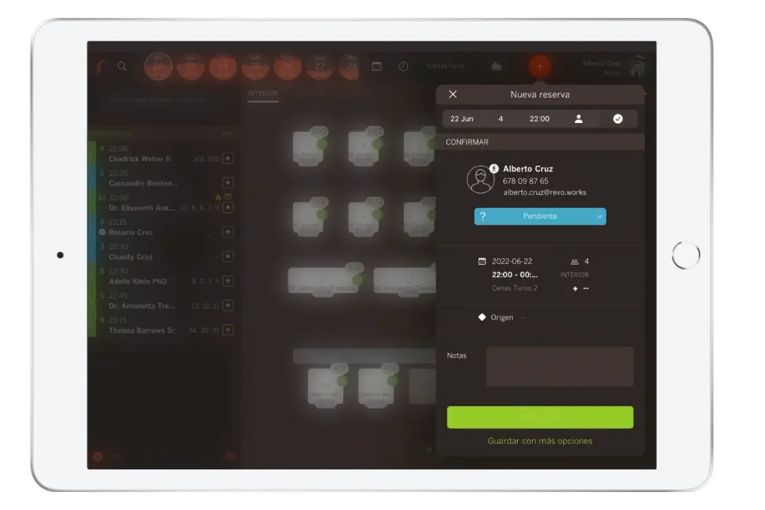 Conecta Revo XEF y Revo FLOW para una mejor gestión de tu restaurante. Recibe reservas y asígnalas automática o manualmente a las mesas de Revo XEF. Accede al estado de tus reservas desde el plano de mesas y controla en tiempo real cómo tu local se va llenando.